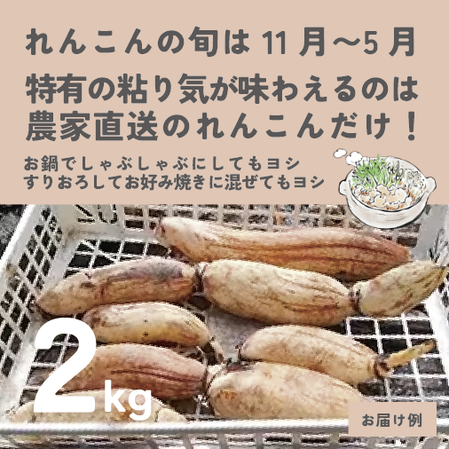中山間地の水田で丁寧に育てたシャキシャキ、モチモチのレンコンをぜひご賞味ください。