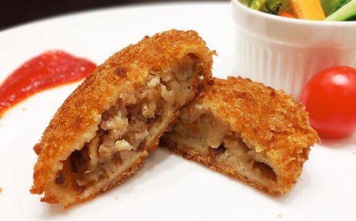 ジャガイモ、玉ねぎ、牛肉(黒毛和種100%、和歌山県産)、牛脂、砂糖、醤油、食塩、香辛料、パン粉、小麦粉/調味料(一部に乳成分・小麦・大豆・牛肉を含む)