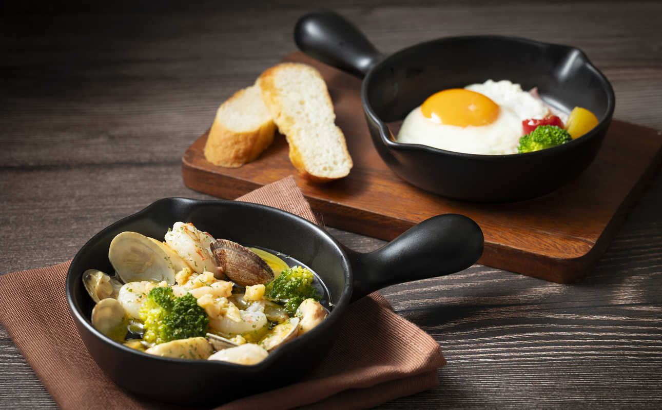 アヒージョ・目玉焼きプレート(黒釉)×2個セット