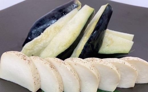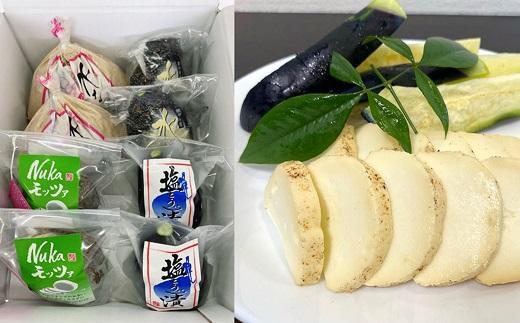 3種類の水なす漬けと、モッツァレラチーズのぬか漬け『Nukaモッツァ』をセットにいたしました。