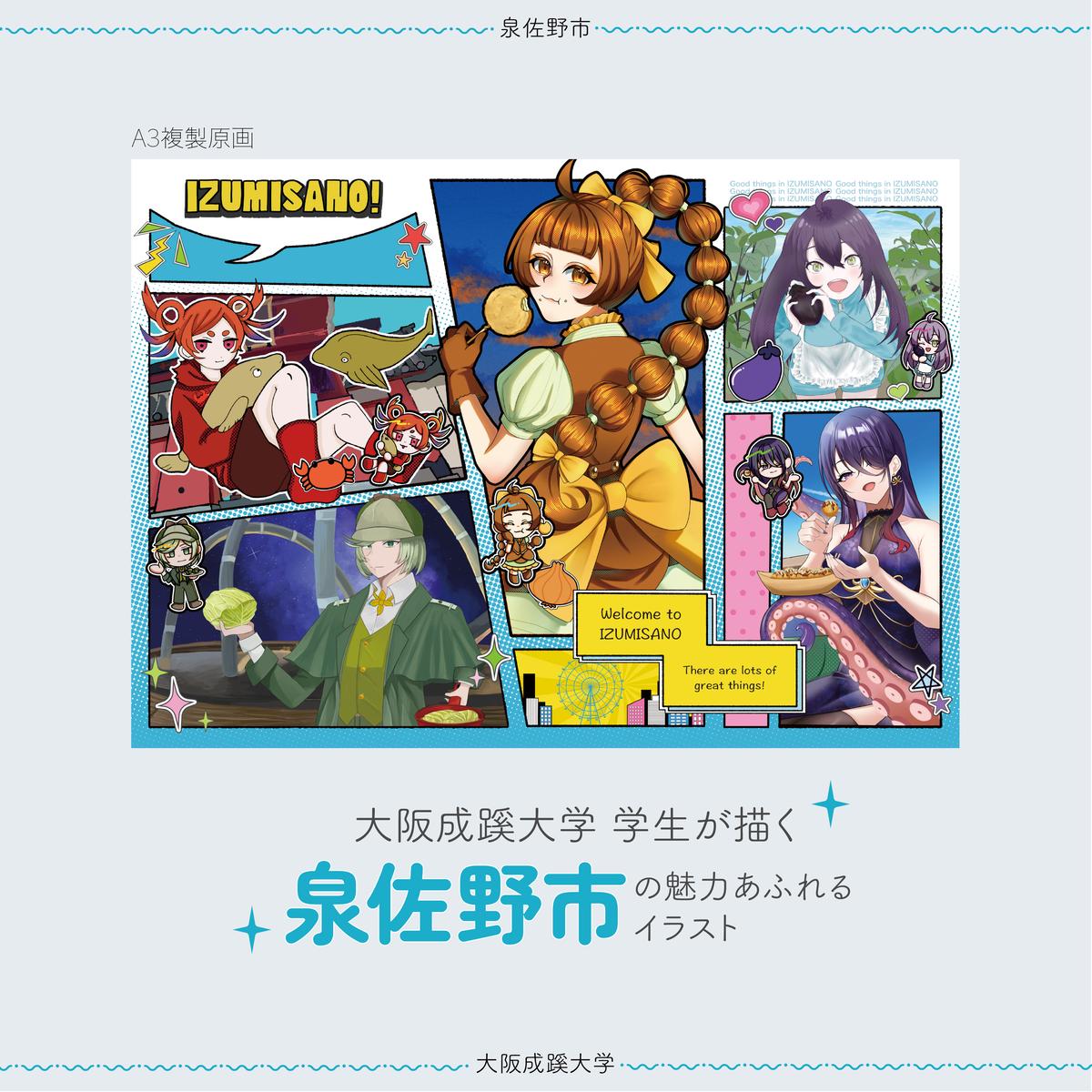 成蹊大学の学生が作成したイラストの複製原画を、泉佐野市内で制作しています。