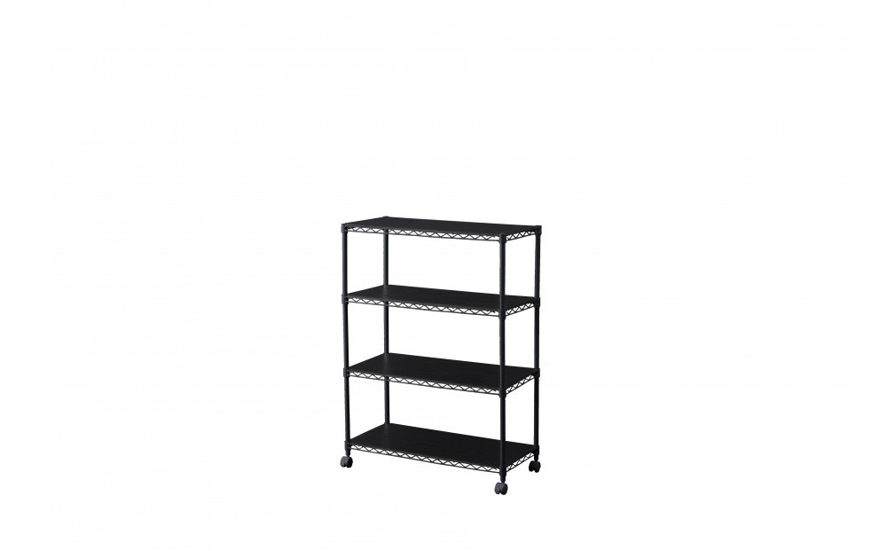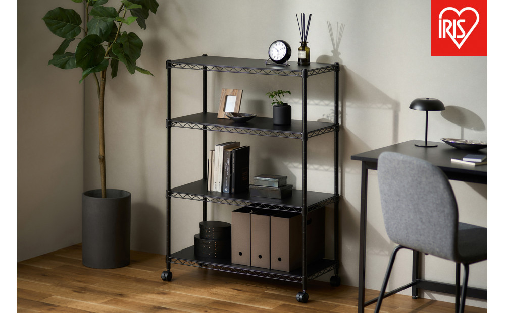 ウッドボード付きのカラー メタルラックです。