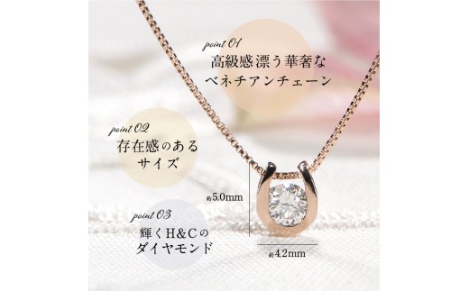 幸運を呼び込むハッピーアイテムとして人気のホースシュー(馬蹄)モチーフに、輝きのきれいなH&Cダイヤモンドを一粒あしらえました。