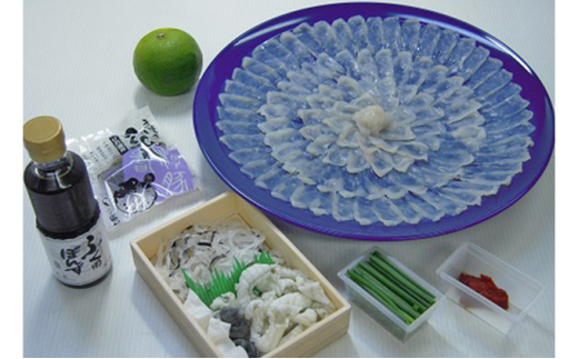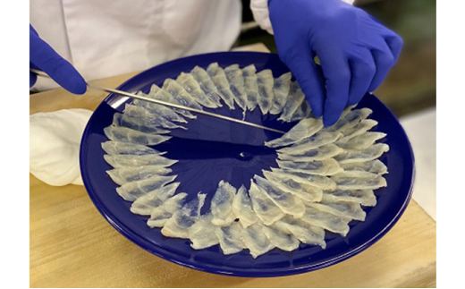 ふぐの中でも最高級魚とされるトラフグ(山口県産・養殖)の刺身・ひれ酒をお楽しみいただけます。ご希望日に合わせて自社いけすより水揚げし、調理・発送いたします。