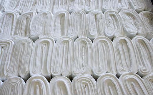 「和晒」でじっくりと時間を掛け炊き上げられた二重織ガーゼの繊維の断面は円形を保ち、また目には見えない無数の毛羽が残っています。その恩恵として、ふんわりと柔らかな肌触りと、高い吸水性、通気性を生み出します。