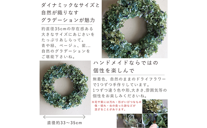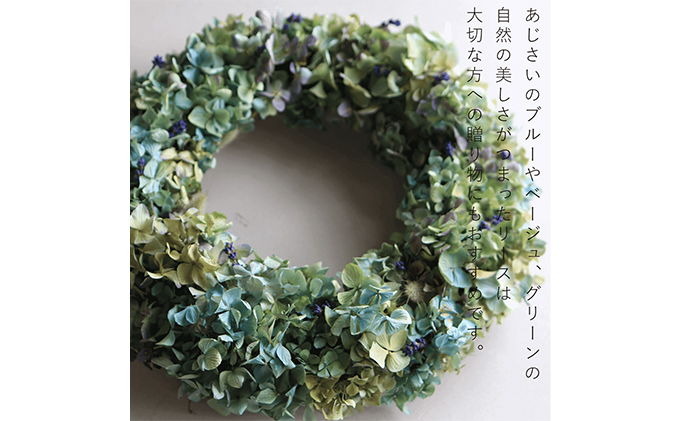 ※あじさいのドライフラワーはグリーンやブルー、パープルなど様々な色が含まれます。お色をご指定いただくことはできません。