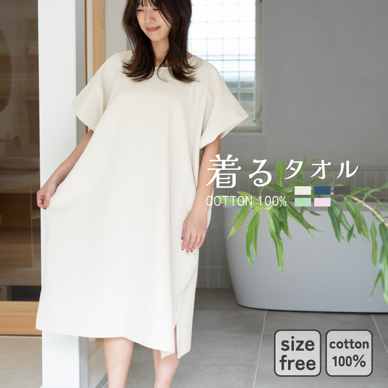 表面は通気性に優れたガーゼ地、裏面は吸水性に優れたパイル地を使用したデイリーユースにぴったりの着るタオルです。