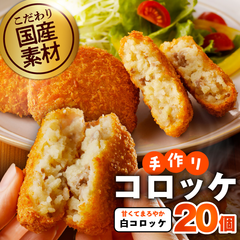 白コロッケはジャガイモと玉ねぎのコラボした野菜の甘みがひき肉の旨みを引き立てる!お子様や甘いものが好きな方に好まれる味わいです。