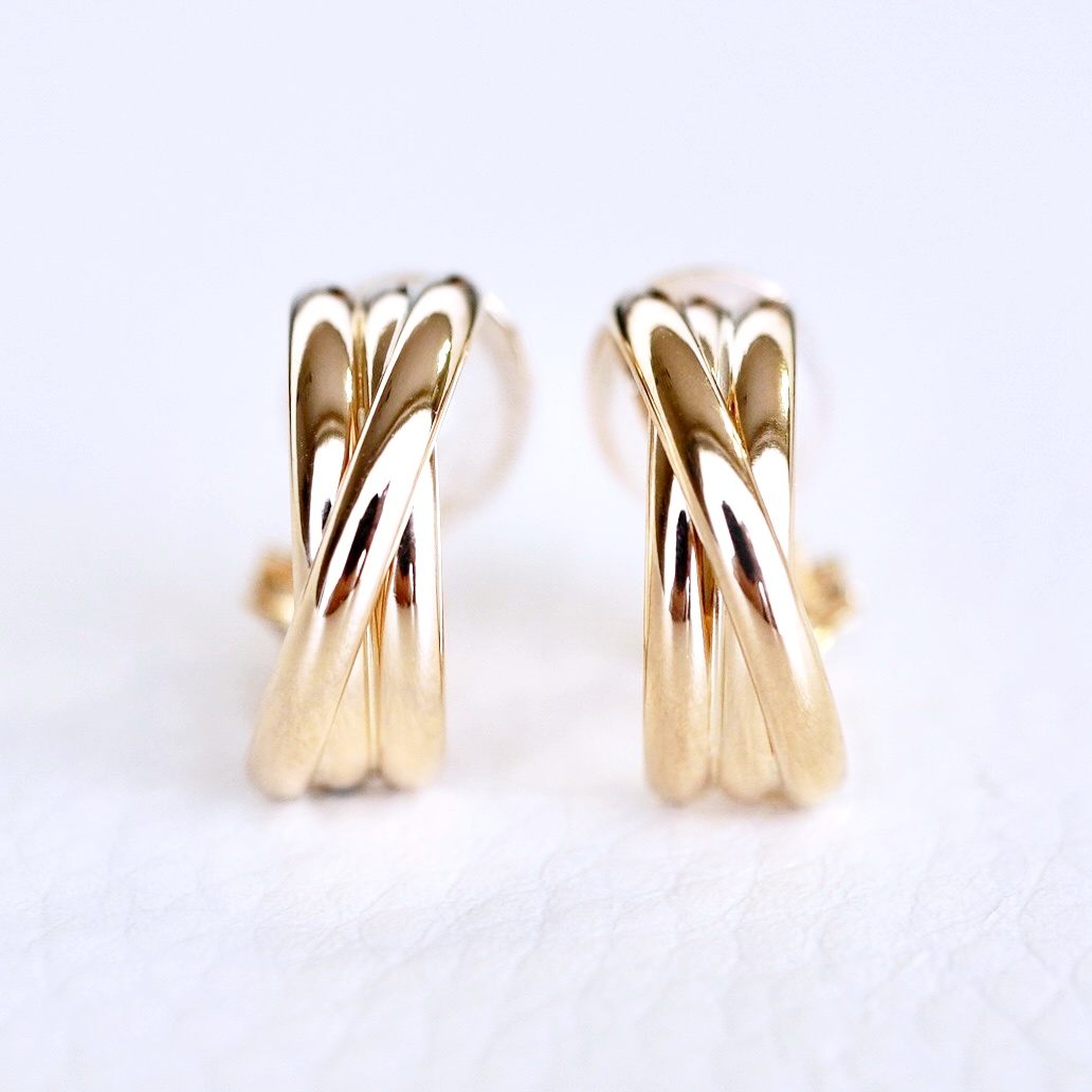 耳を包み込むような三日月形で顔周りを華やかに演出してくれます。
