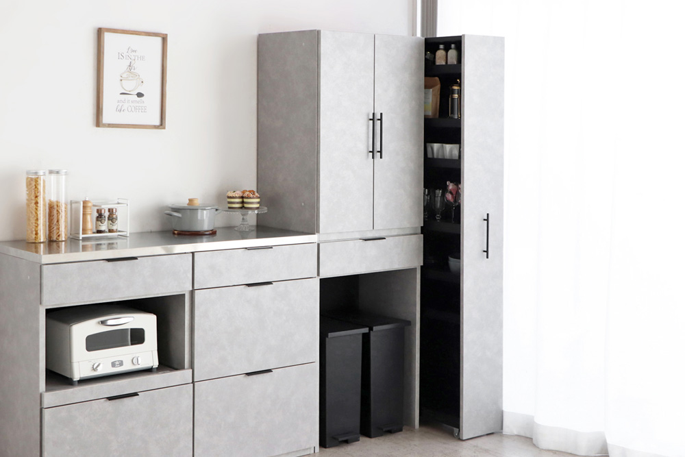 冷蔵庫横や食器棚横など、デッドスペースになりがちな部分を、
