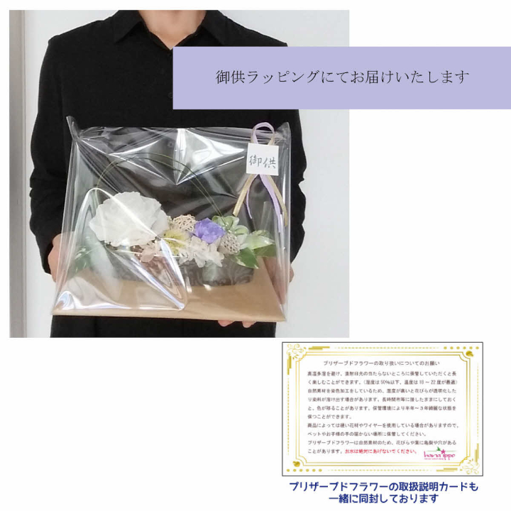 透明フィルムにてラッピングしてお届けいたします。