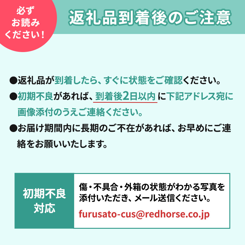 ※商品受取後すぐに商品の状態をご確認し、不良の場合、お問合せセンターまでご連絡ください。お時間が過ぎてからの対応は致しかねます。