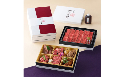 近江牛ローストビーフスライス/200g・近江牛味噌漬け/30g前後・近江牛ロースステーキわさび添え/80g前後・近江牛すき焼き煮/60g前後・近江牛ローストユッケ仕立て(和風ポン酢)/40g前後・近江牛赤身ステーキ(ステーキソース)/50g前後・近江牛ビーフシチュー/80g前後