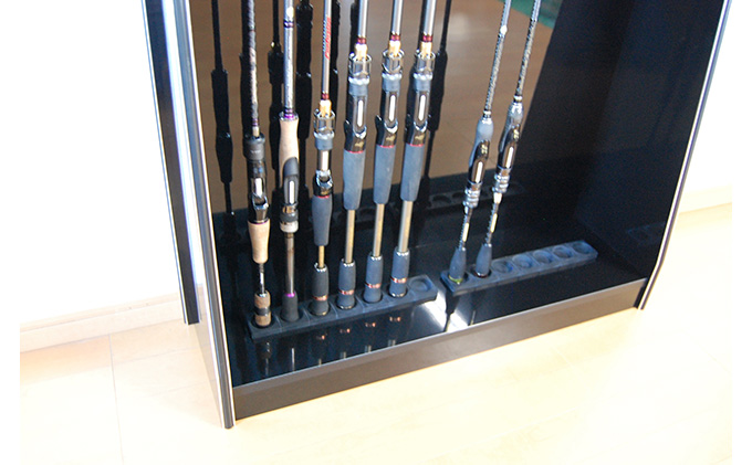 仕様:背面化粧(艶なし)、木口はメッキモールを使用、ABS樹脂製ロッドキャッチャー14個、ゴム製ロッドホルダー7本用×2個