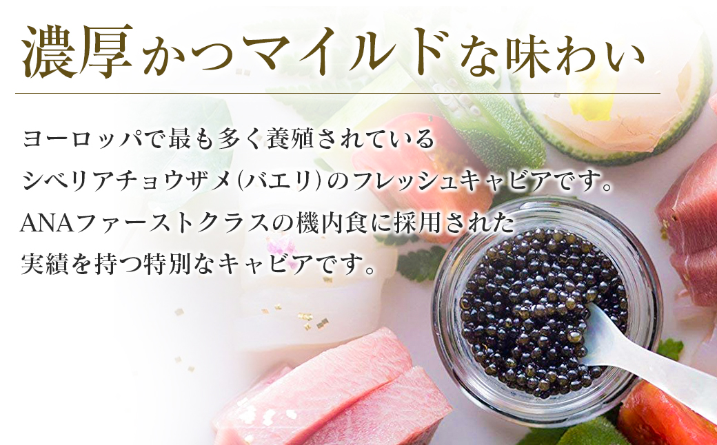 ANAファーストクラスの機内食に採用された実績を持つ特別なキャビアです。