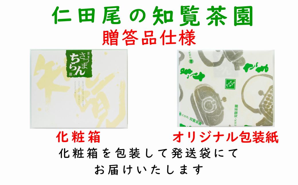 こだわりの知覧深むし茶を贈り物用にオリジナル包装紙でご準備させていただきます。