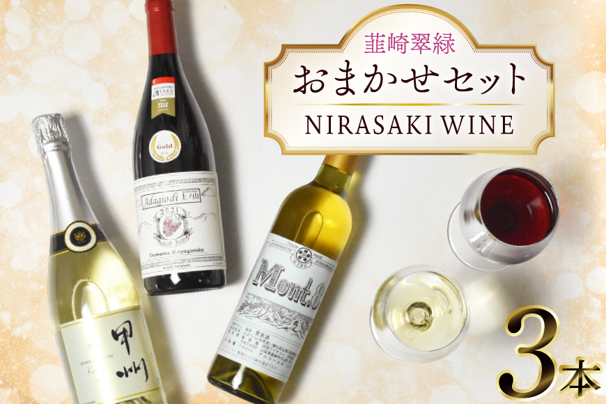 数あるワインに中から韮崎翠緑が厳選したワインを3本セットにしてお届け!