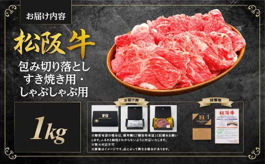 松阪牛包み切り落としすき焼きしゃぶしゃぶ用1kg ギフト箱入り