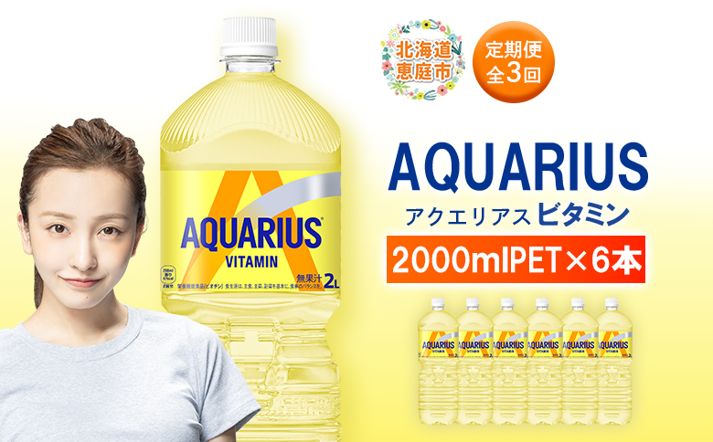 定期便 全3回 アクエリアス ビタミン 2LPET×6本 | ビタミン マルチビタミン ビタミン飲料 健康飲料 スポーツドリンク 熱中症対策 水分補給 大容量 2Lペットボトル 6本セット 日常使い ビタミン補給 お取り寄せ ワンストップ マイページ コカ・コーラ 恵庭市