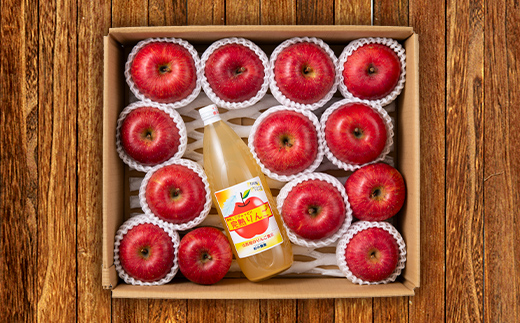 当農園こだわりの完熟みつ入りふじりんごと、コクのあるふじりんご100%ジュースを詰め合わせに致しました。