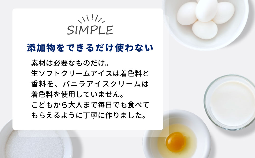 バニラアイスクリーム:生乳(国産)、乳製品、砂糖、還元水飴、卵黄(卵を含む)、バニラビーンズ(マダガスカル産)/安定剤(増粘多糖類)、バニラ香料