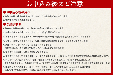 ※さつまいものお届けまでに、ご住所・電話番号の変更がある場合は、株式会社育みの里しろはとまでご連絡ください。