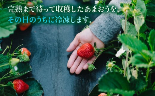 完熟まで待って収穫したあまおうを、その日のうちに冷凍します。