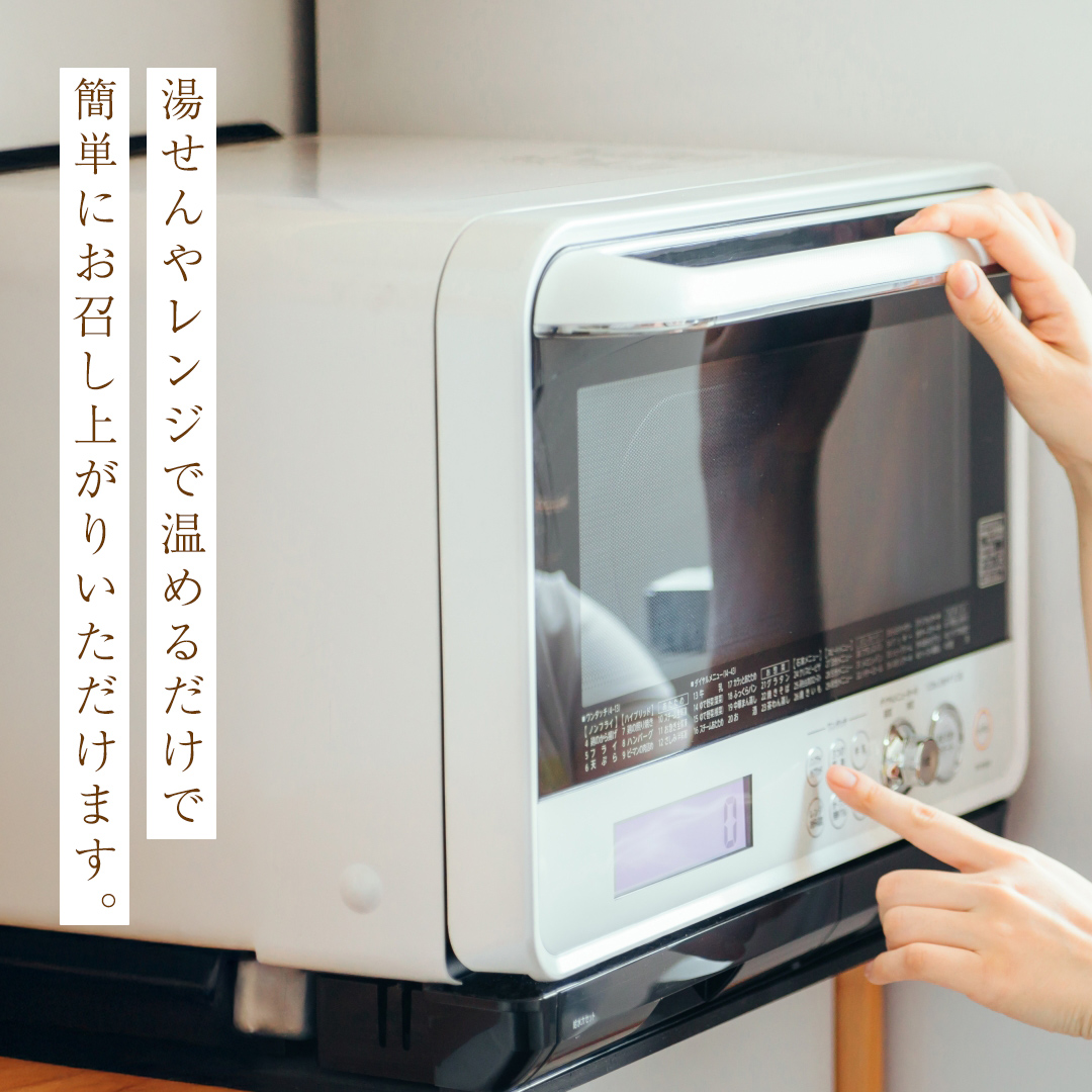 加熱後に冷凍、真空包装しているため、温めるだけでお召し上がりいただけます。
