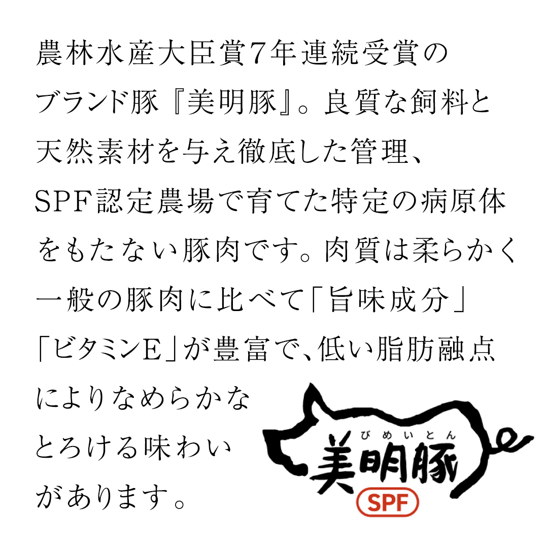 農林水産大臣賞7年連続受賞のブランド豚『美明豚』。