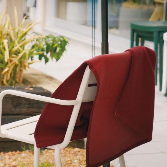 同系色の濃淡で構成された、リバーシブルブランケット。