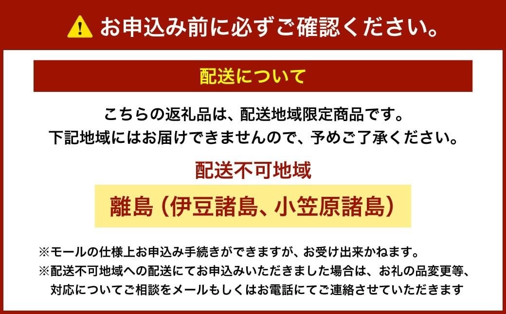 ※冷凍便の為、伊豆諸島(うち式根島・利島・御蔵島・青ヶ島)および小笠原村(小笠原諸島)へのお届けはできません。
