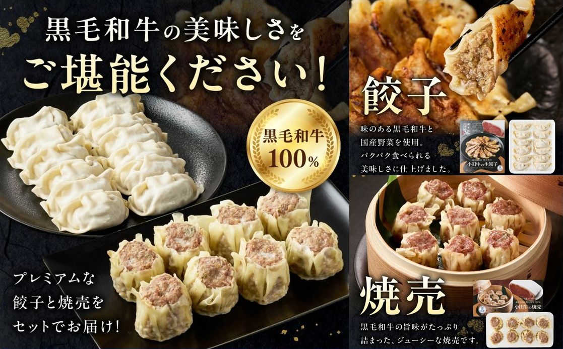 黒毛和牛100%の餃子と焼売を、食卓でお手軽にお楽しみ下さい。