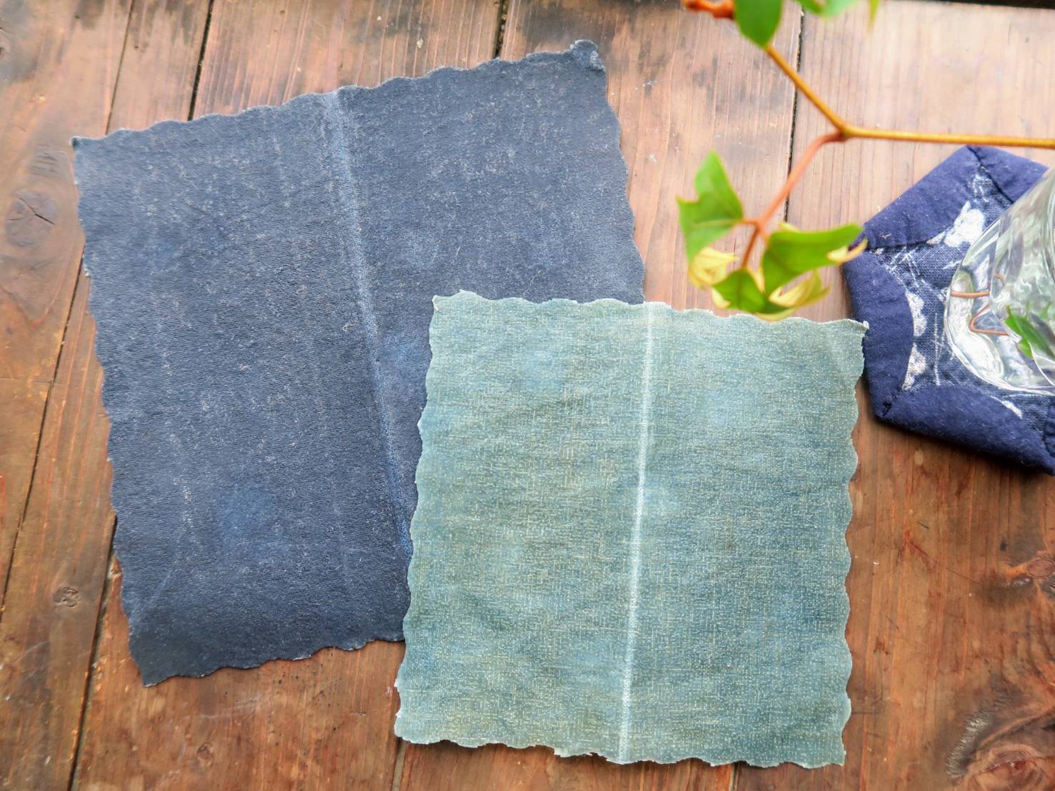 染め:藍染、草木染(かりやす×藍、茜、たんがら、山もも)