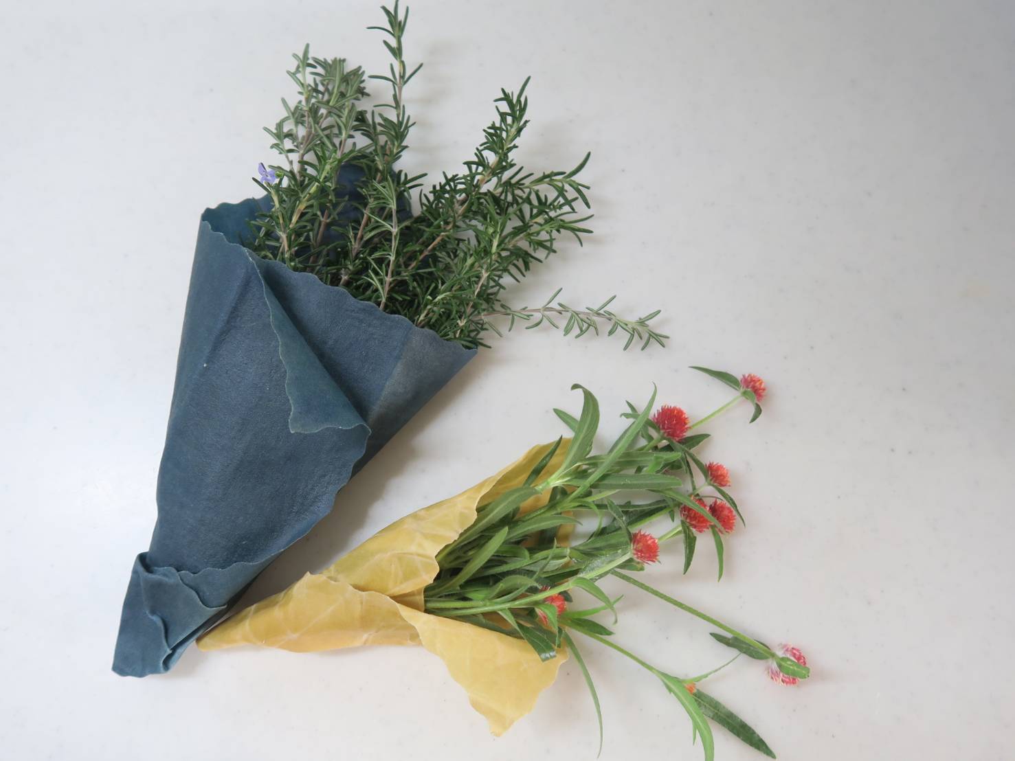 コットン生地に、みつろう、ホホバオイル、松やにを染み込ませて作った食品保存用ラップです。