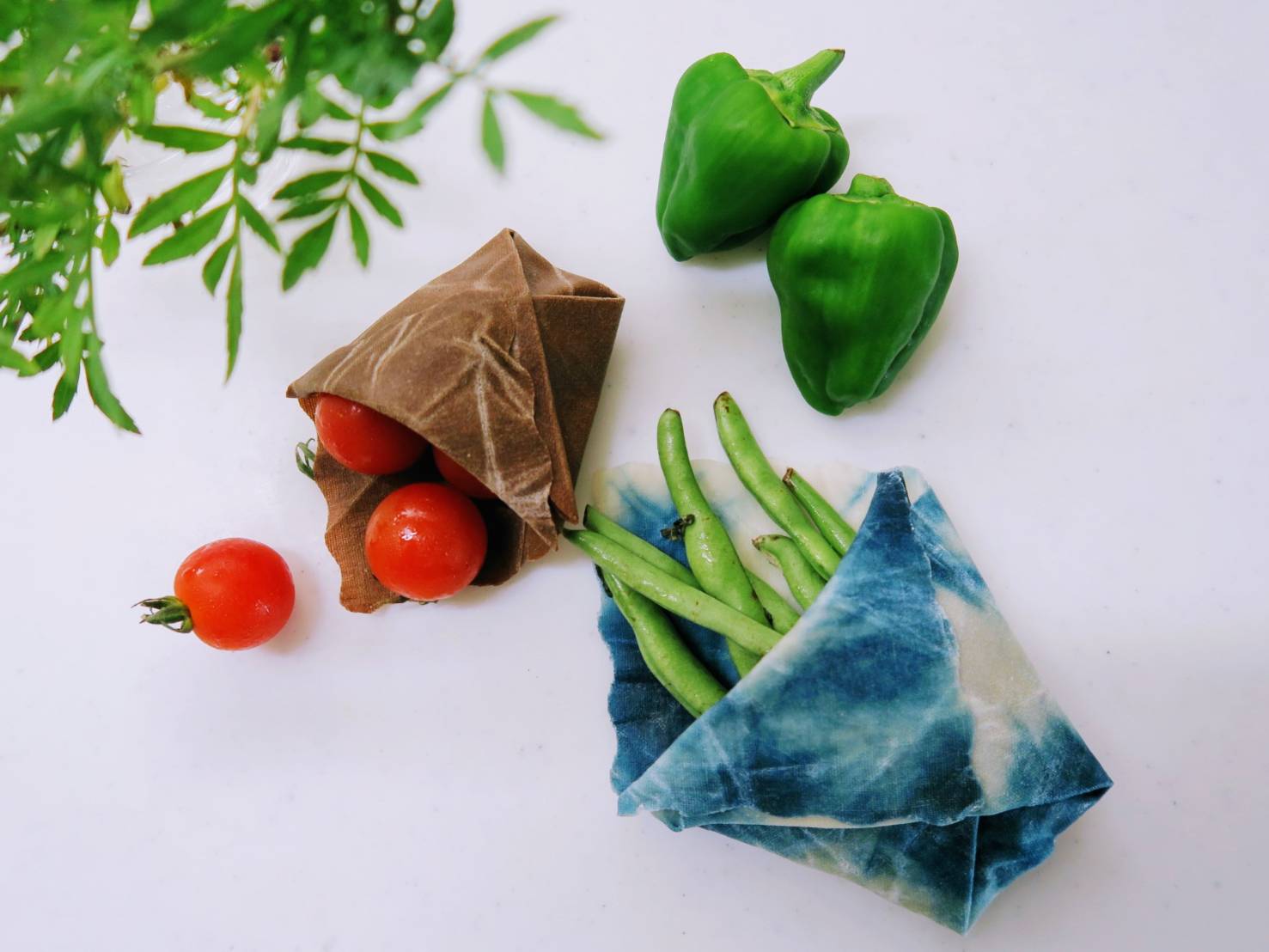 Fukutsuboオリジナル藍染草木染エコラップは、麻混の生地を使用しており、さらに抗菌作用がアップ。