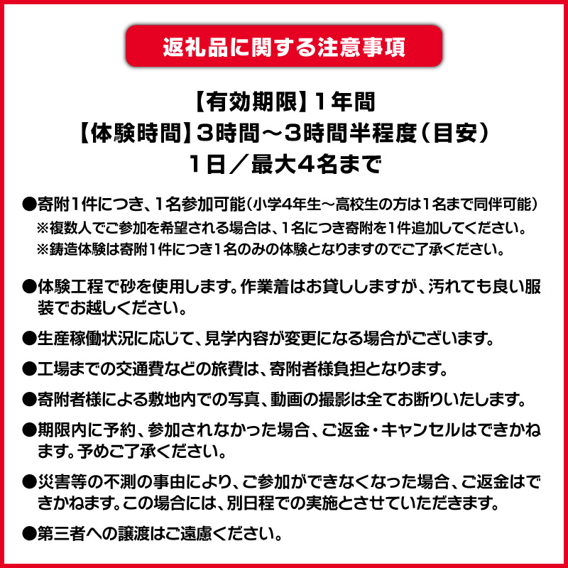 ※鋳造体験は寄附1件につき1名のみの体験となりますのでご了承ください。