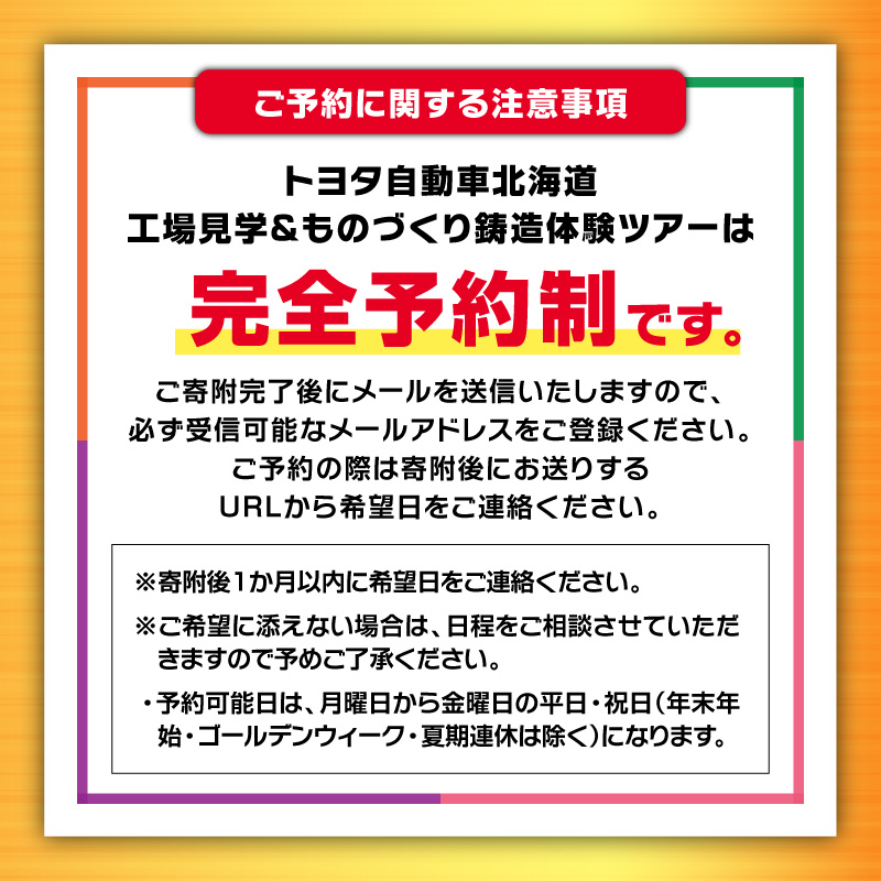 体験 鋳造体験 工場見学 社員食堂体験 ハスカップ 完全予約制 トヨタ自動車 トヨタ ものづくり ものづくり体験トヨタ自動車北海道 ふるさと納税 北海道 苫小牧市 おすすめ ランキング プレゼント ギフト T071-001
