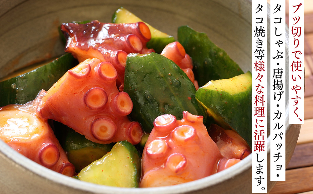 おさしみ、からあげ、酢の物、カルパッチョ、たこ焼き等色々な料理に使えます。小分けボイル冷凍の真空になってますので食べやすく保存も便利です。