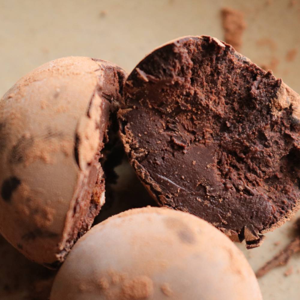 砂糖不使用、麹の濃厚な甘みだけで仕上げた贅沢な生チョコトリュフ。