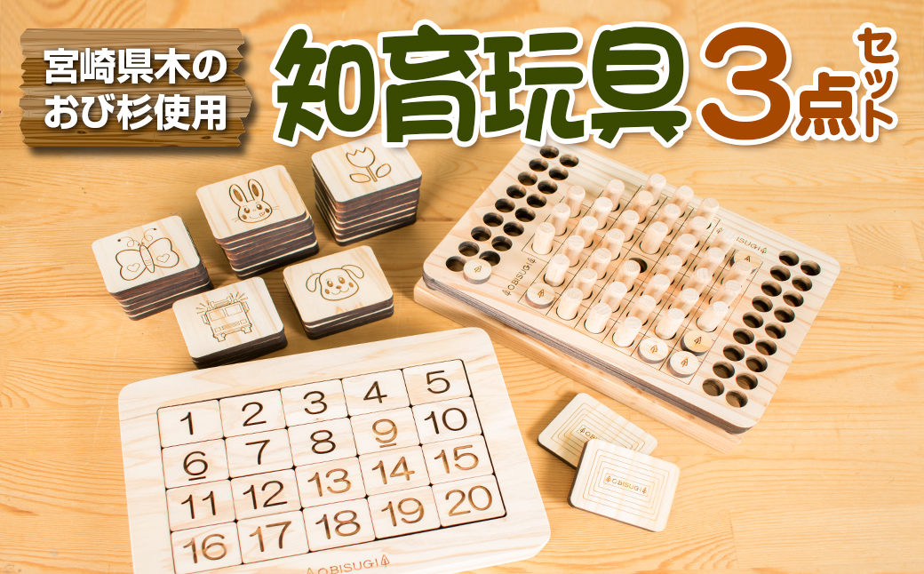 宮崎県日南市産の飫肥杉を使用した『知育玩具(おもちゃ)3点セット』を返礼品としてご用意いたしました!!