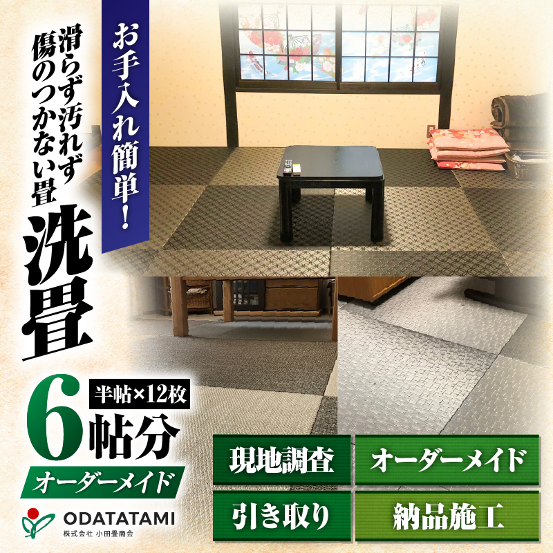 そんな老舗畳店の大人気のシリカ畳6帖分オーダーメイド洗える畳『洗畳』新調縁無半帖サイズをお届け致します。