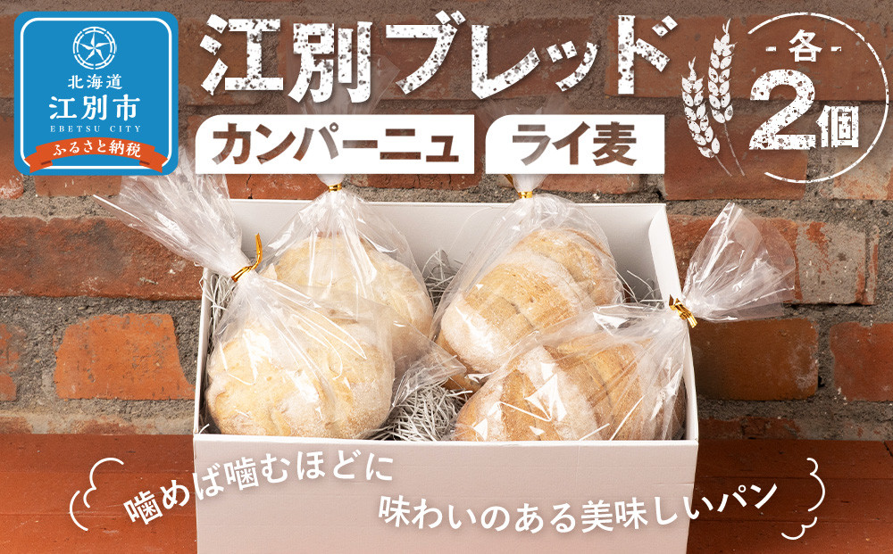 関連キーワード:ブレッド 合計4個 2種 各2個 セット カンパーニュ ライ麦 江別小麦 ハルユタカ使用 保存料 不使用 ハードパン パン 詰め合わせ 朝食 江別市