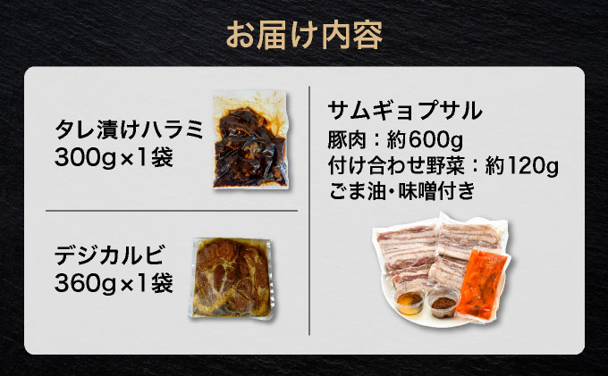 ![韓国焼肉 3種セット(タレ漬け ハラミ / デジカルビ / サムギョプサル)【焼肉 ハラミ はらみ 牛ハラミ カルビ 豚カルビ 豚バラ お肉 肉 牛肉 豚肉 焼くだけ 秘伝 たれ 味付き 韓国料理 焼き肉 BBQ 鉄板焼き 肉厚】[058-b002]【敦賀市ふるさと納税】](https://www.furusato.aeon.co.jp/g_img/182028/file_34613c17dbc6ec9b5b301283135b548c.webp)