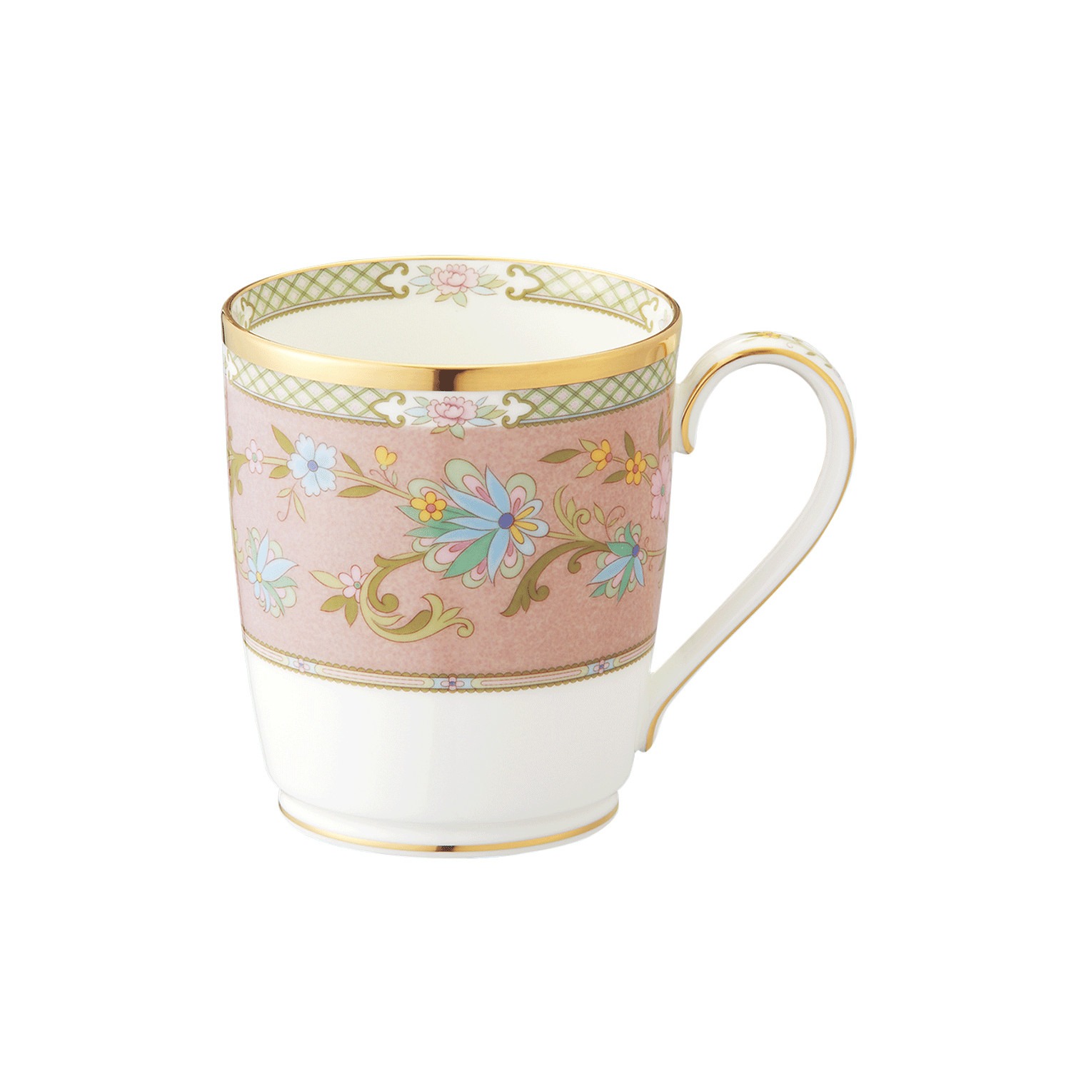 カップに咲き誇る花々は吉野山の桜、ソーサーの緑色は裾野の緑をイメージ。