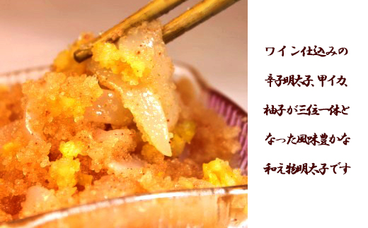 ゆずいか明太子は、ワイン仕込からし明太子とお刺身用甲イカとゆずが三位一体となった、