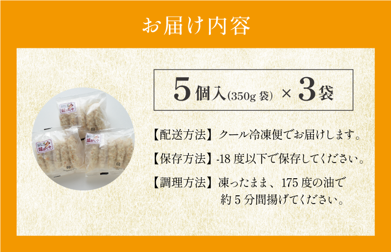 【調理方法】凍ったまま175℃に熱したたっぷりの油で、約5分間揚げてください。