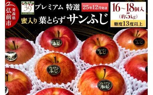 【25年12月発送】りんご 【 数量限定 】糖度13度以上 「特選」プレミアム 蜜入り 葉とらずサンふじ 約 5kg 16~18個