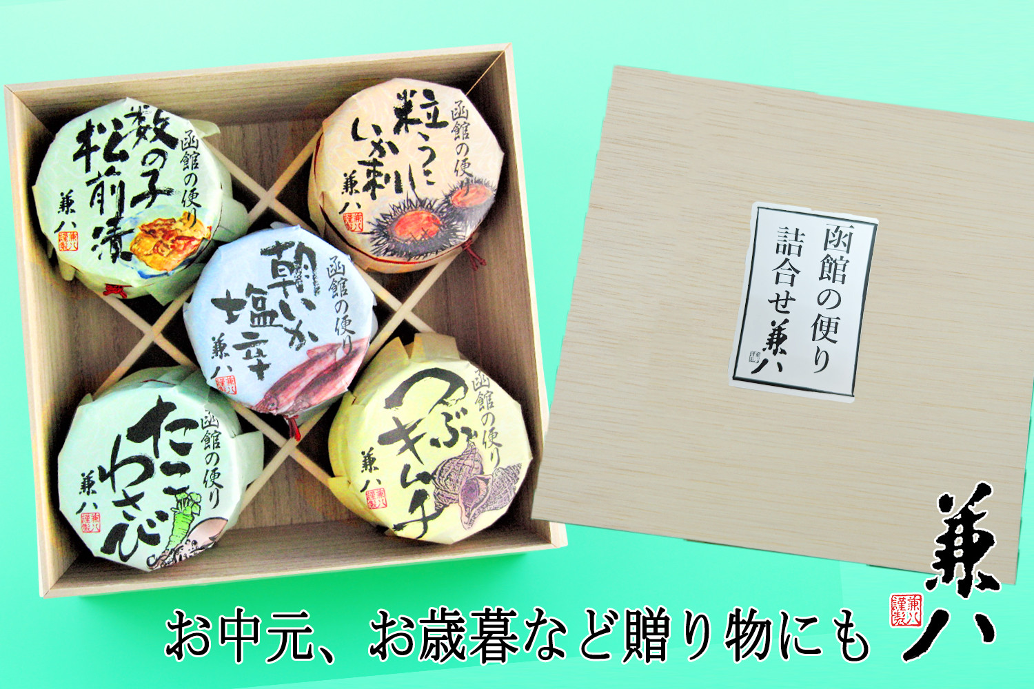 朝いか塩辛100g、数の子松前漬100g、粒うにいかさし80g、たこわさび80g、つぶキムチ80g