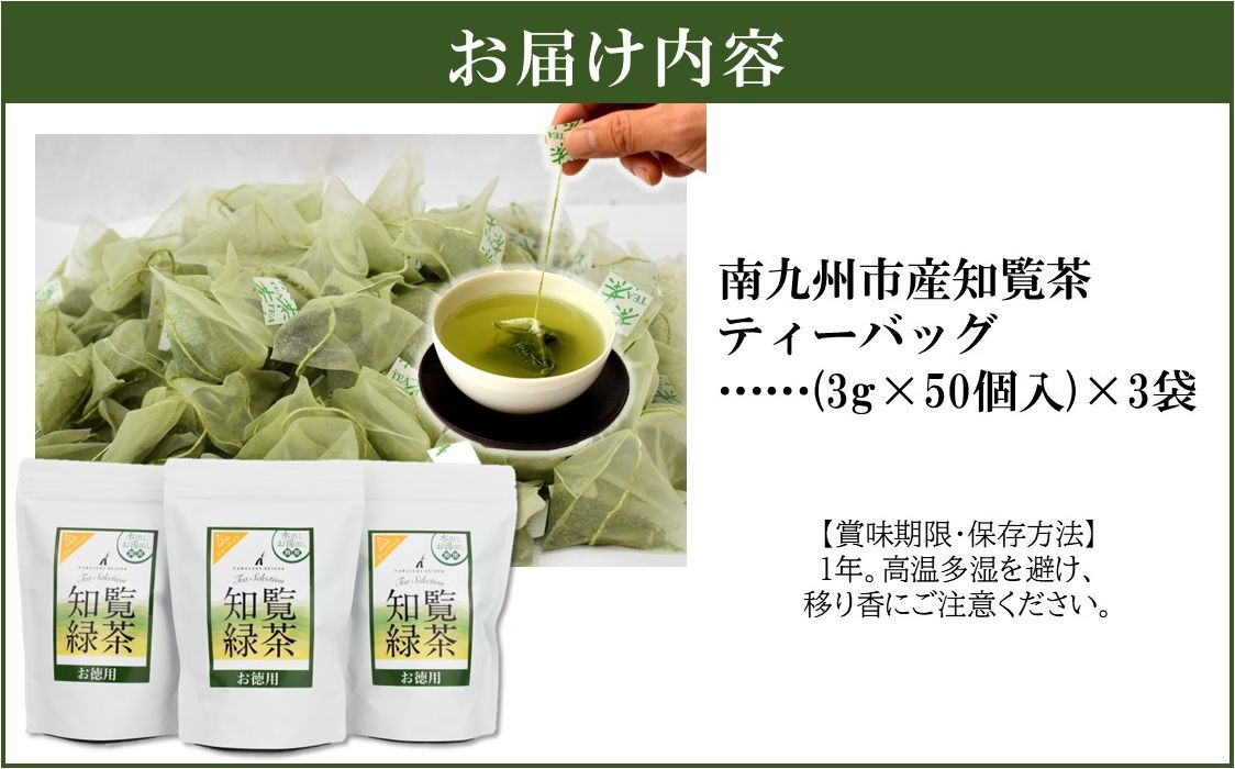 南九州市産知覧茶ティーバッグ(3g×50個入)×3袋