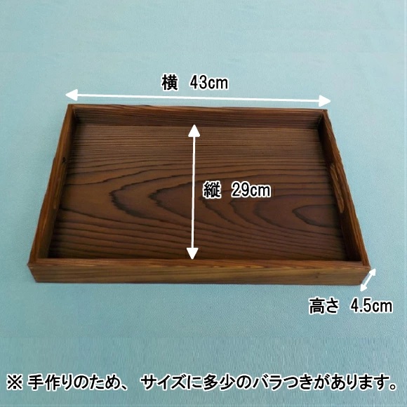 庄内産杉の焼き杉のお盆 (縦290mm×横430mm×高さ45mm 重さ400g)